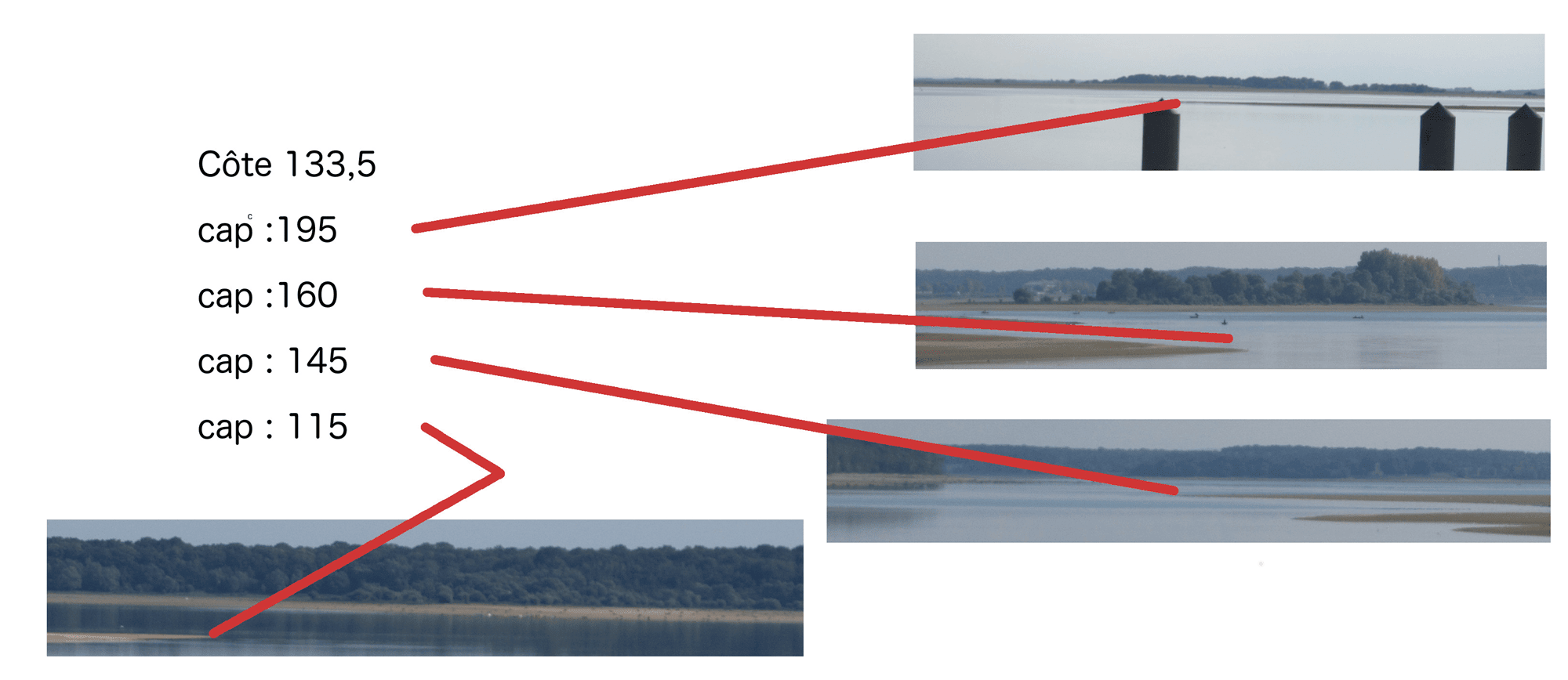 En regardant la photo ci-contre dessous, on voit les fonds emergeants à la côte 133,5 M.